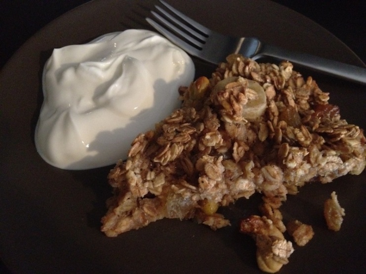 Svačina: Pečená ovesá kaše s půlkou řeckého jogurtu