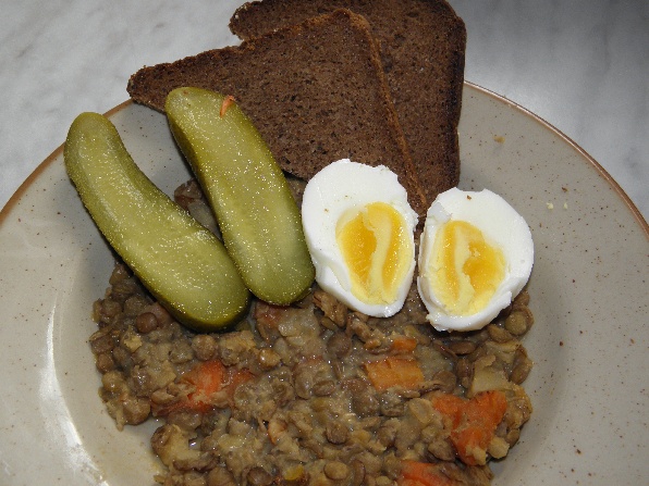 O: čočka, vajíčko, okurka, celozrnný chléb