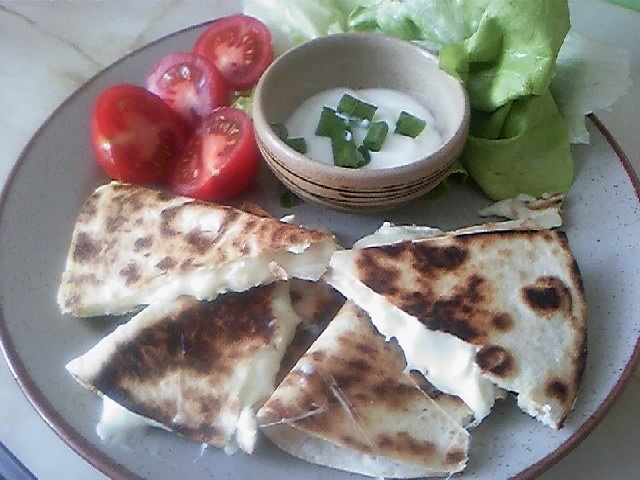 ob: sýrová quesadilla se zakysanou smetanou, zelenina