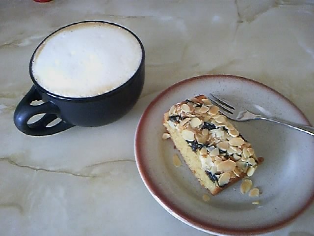 sv: špaldový řez s mandlemi, maxi cappuccino (holky mi tu udělaly chuť)