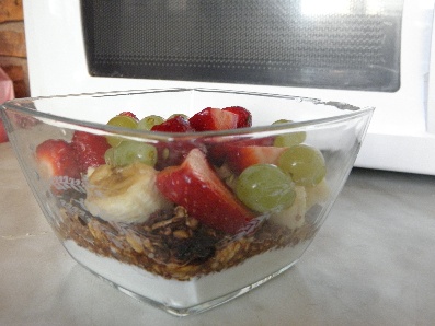 SN: domácí pohankové musli, jogurt, mix ovoce