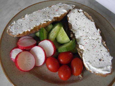 SV: tmavý kornspitz s tvarohem, zelenina
