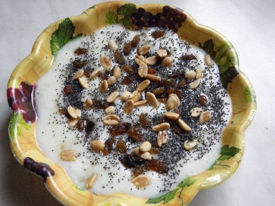 SN: krupicová kaše, rozinky, arašídy, mák, med
