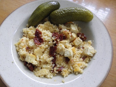O: kuskus se sušenými rajčaty a tofu, 2 kys. okurky