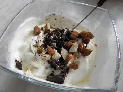 SV: tvaroh, mandle, hořká čokoláda, sirup z agáve