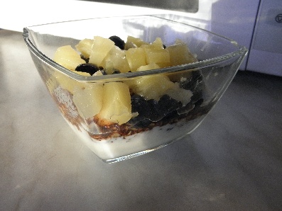 SN: bílý jogurt, pohankové musli, ananas, borůvky