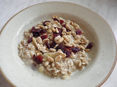 SN: ovesná kaše s banánem, brusinky, arašídy