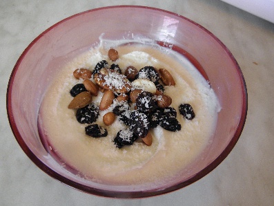 SV: tvaroh (250g), ořechy, rozinky, kokos, agáve sirup