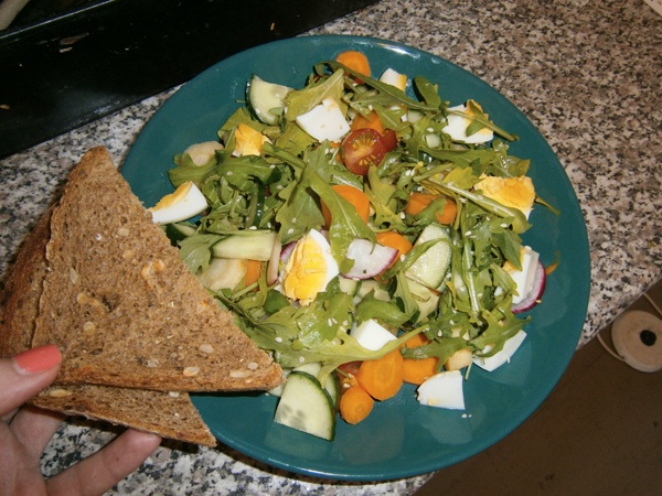 OB: salát (rukola,cherry,vajíčko,mrkev,okurek,) prostě skoro všechno