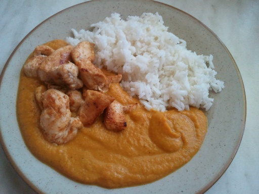 O: kuřecí maso v mrkvovo-zázvorové omáčce s rýží (recept dám zítra na blog )