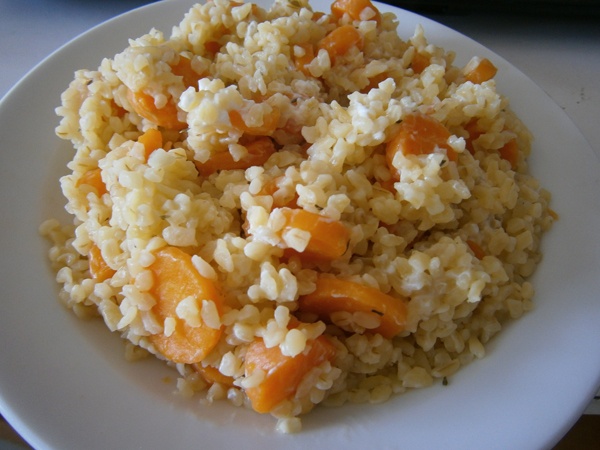 OB:bulgur s mrkví vařenou na páře a tymiánem + lžička ricoty