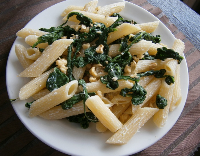 OB:80 g penne se špenátem,ricottou a trošku vlašáků na posypání