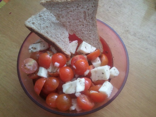 V: rajčatový salát s mozzarellou light, celozrnný toast