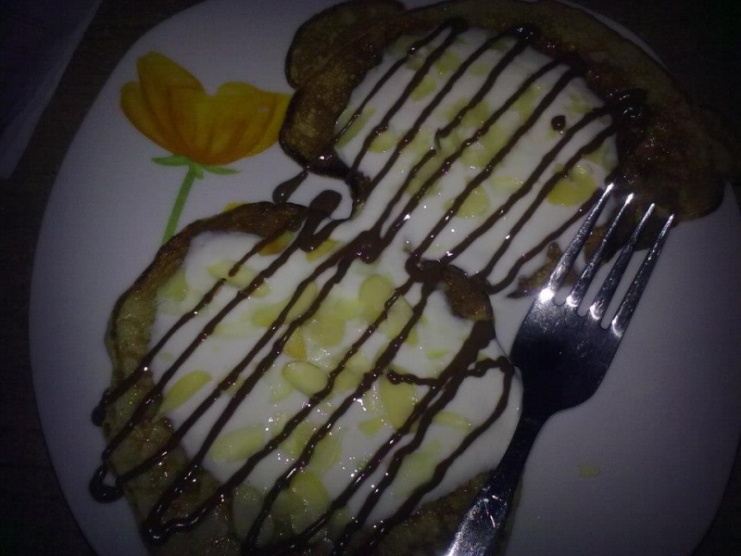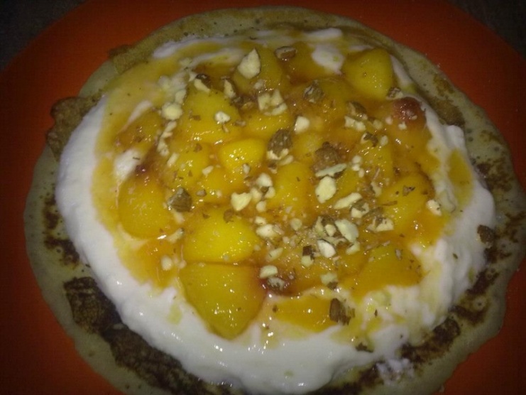 pancake, jogurt, broskvov peliv