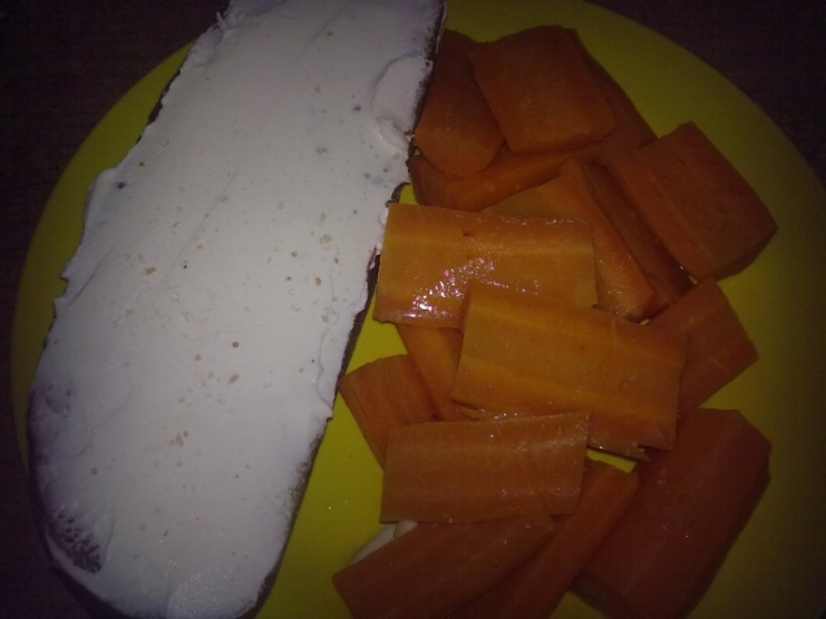 Svačina: žitný chléb, domácí lučina, mrkev na páře,