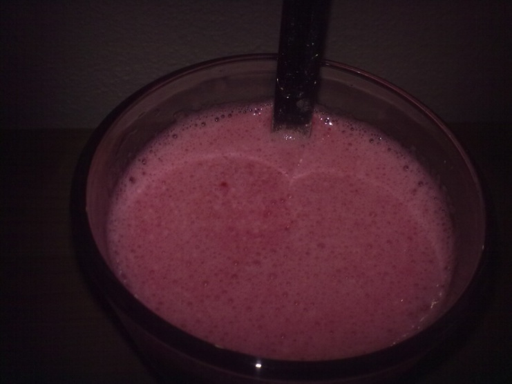 Před spaním: malý koktejl ze syrovátky, polotučného mléka a proteinu (potřebovala jsem dohnat příjem a bílkoviny )