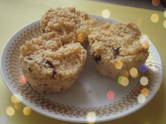 SV: 3 jáhlové muffiny, ( v podstatě jen zapečená jáhlová kaše s rozinkami, burákovým máslem,a kokosem)