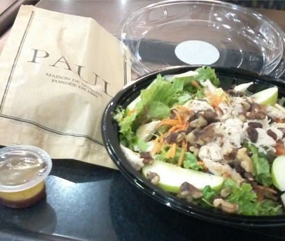 OB: salát farmier (salát,kuřecí maso,vlašáky,jablko,rozinky,mrkev,ementál)+malý kousek ořechového chlebu