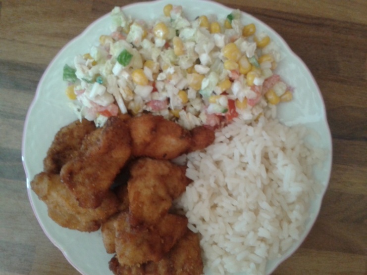 Ob: Kuřecí nugety+rýže+zeleninový salát