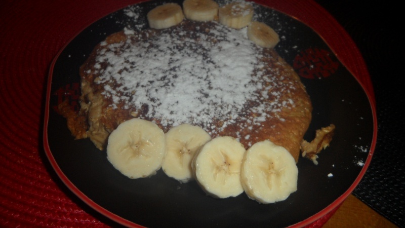 Sn: ovesná palačinka s banánem, cukrem moučkou,javorovým sirupem