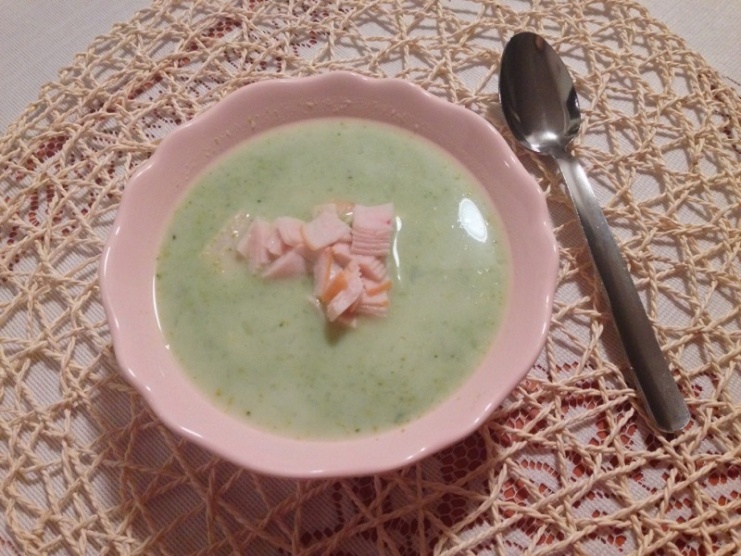 20:30 brokolicová polévka s trochou free laktose mléka, šunkou a kuřecíma prsama