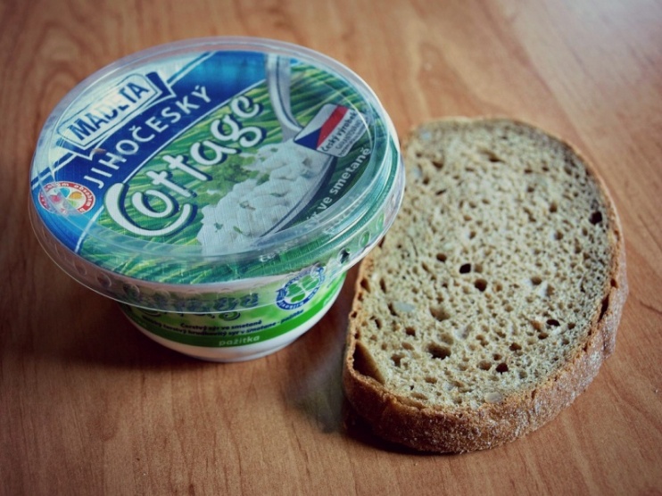 Oběd: pažitkový cottage a opět plátek penam chleba