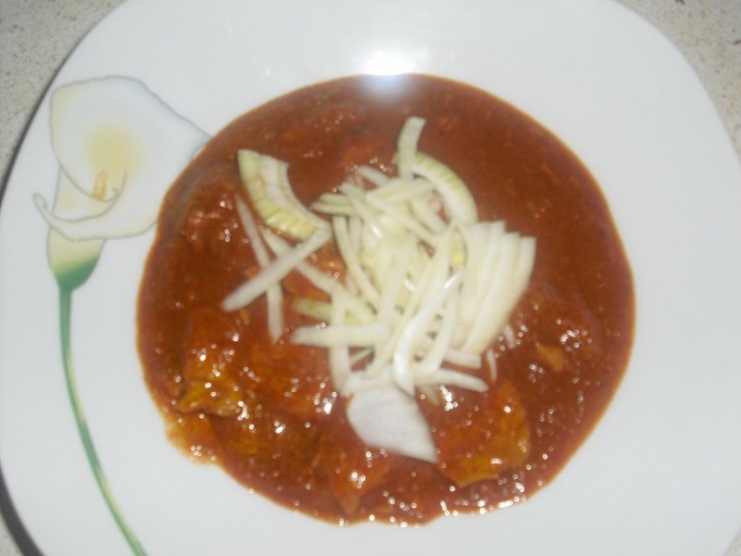 oběd: dietní vepřový guláš, cibule, 1/2 tmavého rohlíku