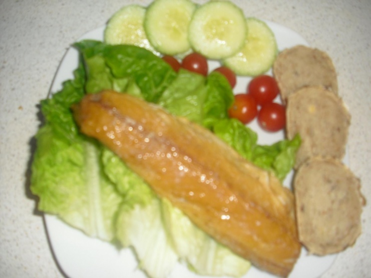 večeře: filet makrely, zelenina, 1/4 tmavého rohlíku