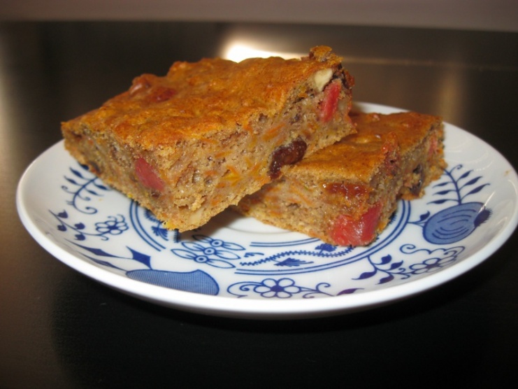 Oficiálně se to jmenuje kořeněné mrkvovo-brusinkové řezy, já je dělám takto:
