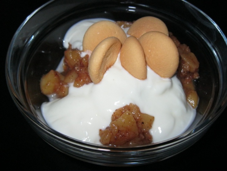 SV: dušená jablka se skořicí, půlka bílého jogurtu, 5 piškotů