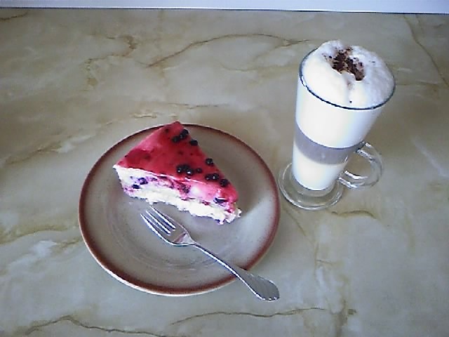 sv: lehoučký dort z mascarpone a lesním ovocem, latté