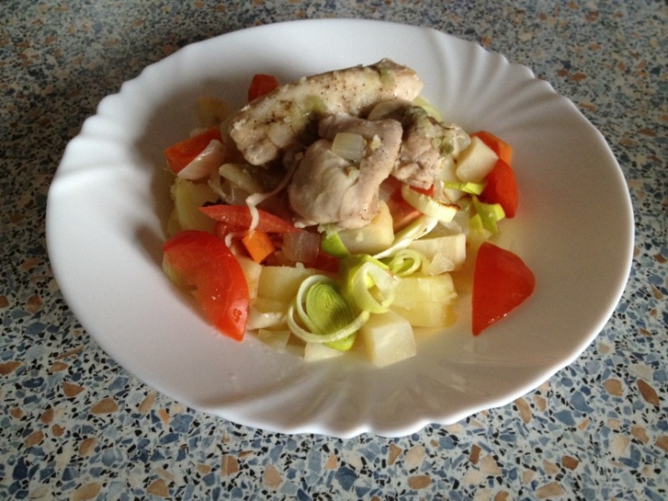 OB: pečený králík s kořenovou zeleninou a bramborem