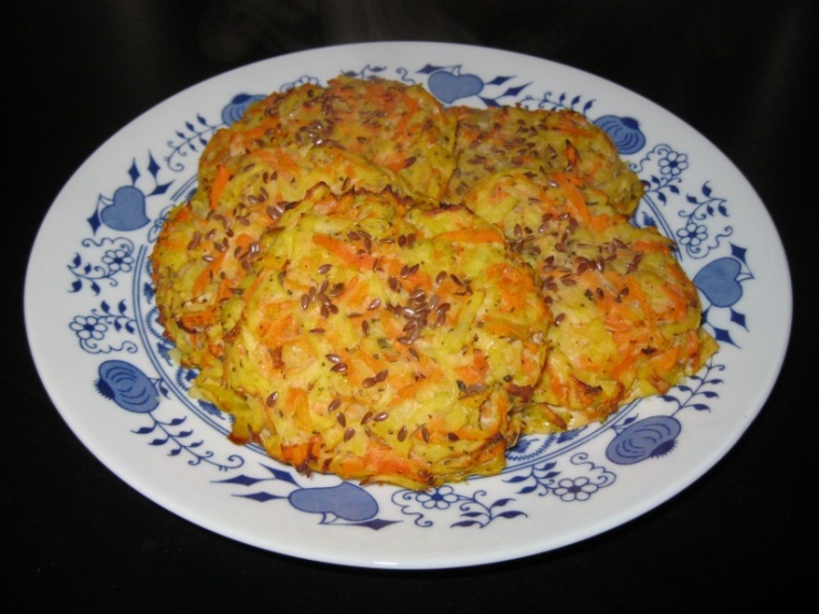 OB: bramborovo-mrkvové placičky s provensálskými bylinkami (pečené v troubě na pečícím papíře)