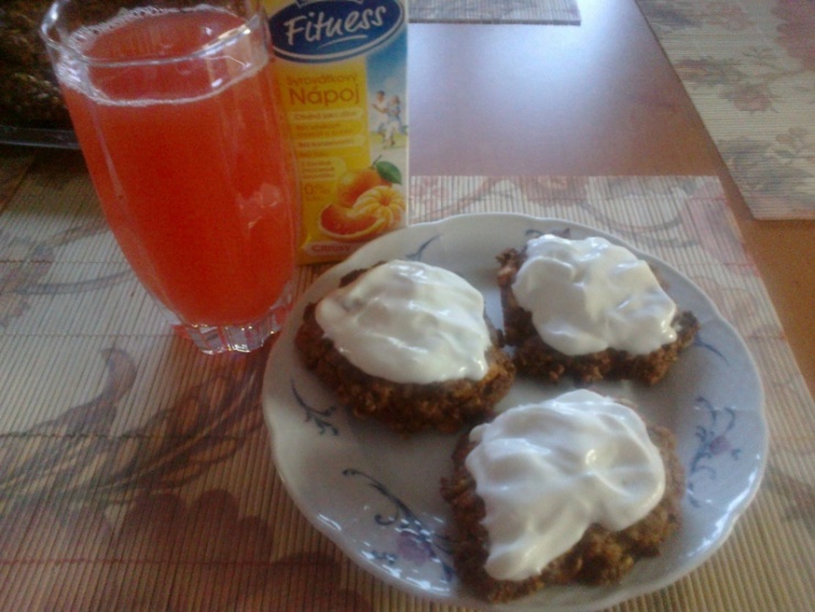 SN: oříškovo-müsli medové placičky+jogurt+syrovátkový pomerančový nápoj