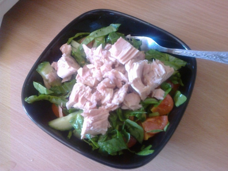 OB: zeleninový salát(špenát,okurka,rajčata,oliv. olej,citronová štáva+tuňák