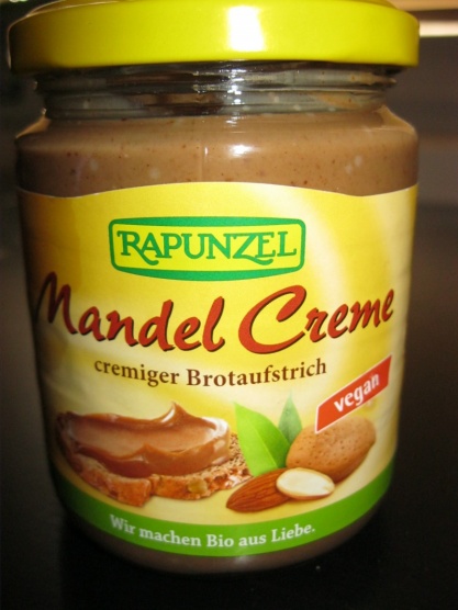 Mandlový krém - to je sladká pomazánka na pečivo, má takovou jakoby nugátovou chuť, moc mi chutnala natřená na kolečka banánu