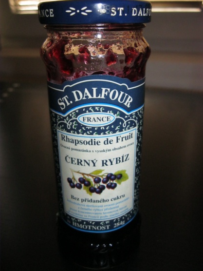 Rybízový džem St. Dalfour - ten je výborný, obsahuje 100 % ovoce a je přislazený jen hroznovou šťávou