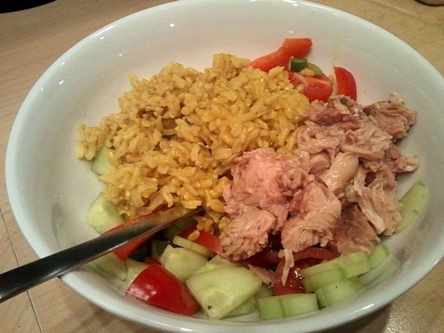 Mám pořád tendenci někde ubírat jídlo - třeba zrovna dnes k obědu, když jsem viděla tu kupu jídla, jsem si říkala, jestli nebude stačit jen 100 g cottage, ale opět jsem si vzpomněla na slova výživového specialisty, který zhodnotil můj jídelníček, že mám přidat na jídle a na pohybu. Takže v rámci mé snahy o zrychlení metabolismu to nechám tak, jak to je.