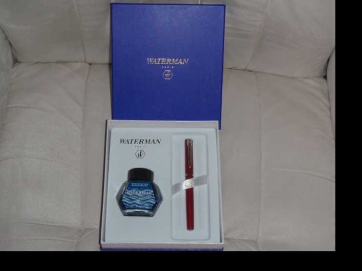 Prodám krásné červené pero značky Waterman, velikost hrotu je M + inkoust! Velice málo používané, pouze 1x jsem naplnila nádržku v peru a psala s ním jen do vypsání inkoustu! Takže inkoust, který přikládám je prakticky úplně plný! Upozorňuji, že tělo pera je lehce poškrábané, měla jsem ho v kelímku s ostatními propiskami a tam se zřejmě podřelo! Zkoušela jsem vyfotit, ale bohužel to nejde, škrábance nejsou nějak extra viditelné, ale jsou tam! Včetně záručního listu a účtenky (kupované v červenci 2008
