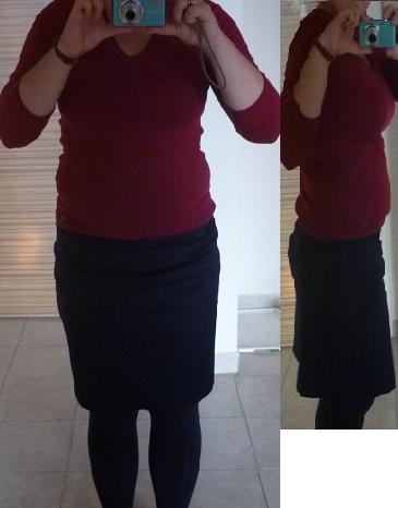 Tak zas nějeké fotky pro tučnější jabka...ukázka toho,jak je výhodná sukně do pasu-ale já ji nosím tak,že na to pak strčím triko,svetřík. Ten tuk se pod ní hezky schová a je jednotný. Kdybych měla sukni na bocích (i kdyby to byla přiměřená velikost,tu co mám na sobě jsem musela jen stáhnout,típ pádem je těsnější),tak veškerý tuk je napěchovaný,vytlačený ven a už jakoby na to upozornuju. To, že mám kila navíc nijak nechovám...to moc dobře nejde,ale vždy můžu vypadat díky oblečení o něco líp (nebo taky hůř).
