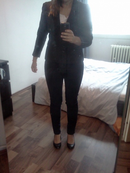 Mám v plánu pořídít si ještě černé úzké kalhoty spíš do pasu, i když nevím jestlije na mateřské vůbec užiju, ale tak snad ke kabátku a kozajdám to na zimu bude ok