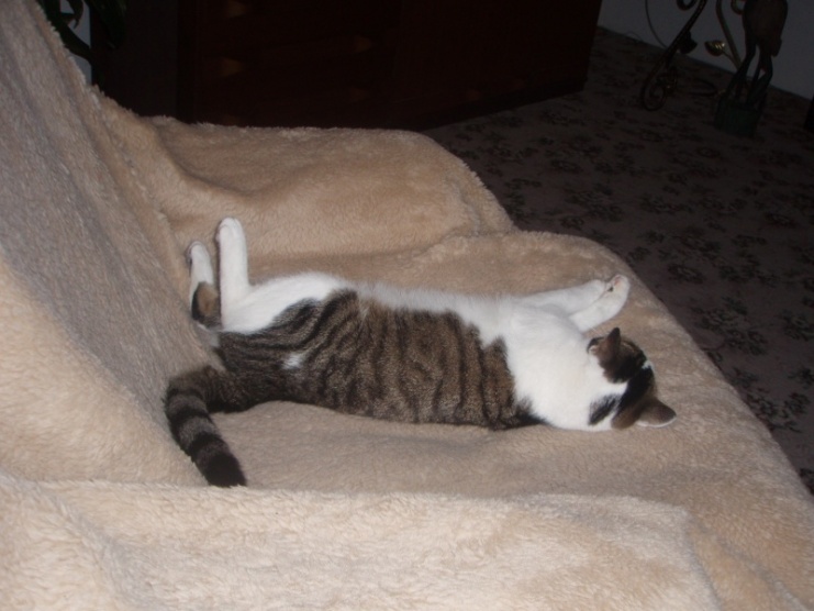 foto bohužel nemám, spinká u sebe na škrábadle a nejlépe je v posteli a u paničky