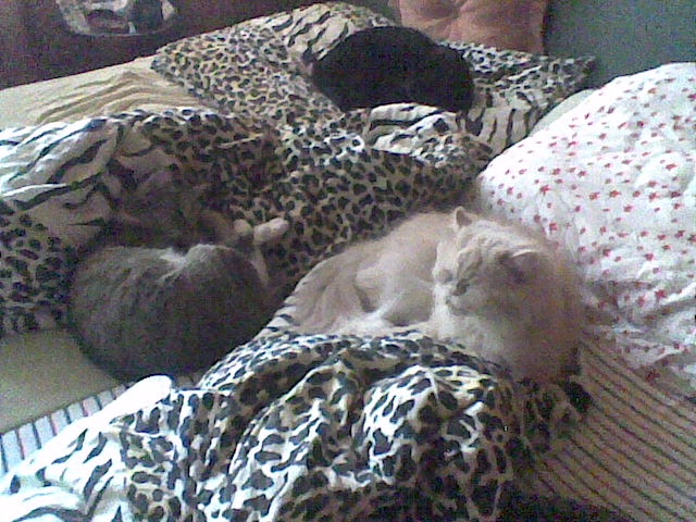 Nemá cenu fotit. Mam kočičku, má svoje škrabadlo s domečkem a destičkou, svojí dečku ale ona nejraději spí ve vypraném prádle. Jakmile dám koš s prádlem na knihovnu hned tam vleze a leží tam celý dny, dokud to chlupatý prádlo nevyžehlim.