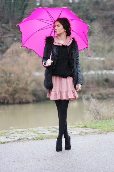 Držela bych se pravidla, že buď jeden kousek oblečení ve fuchsiové barvě a zbytkem utlumit, nebo fuchsiové doplňky (deštník, korále, pásek, psaníčko) a zbytkem utlumit. Tím nemůžeš nic zkazit. Barevně by k fuchsiové měla určitě jít bílá, černá a šedá.