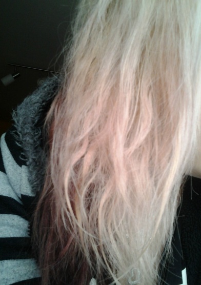 Jednou mě napadnul skvělej nápad si podbarvit blond vlasy fialovou barvou a trošku i ofinu,jenže mi i ty moje blond vlasy chytli do růžova :// Nejde mi to dát za boha dolů