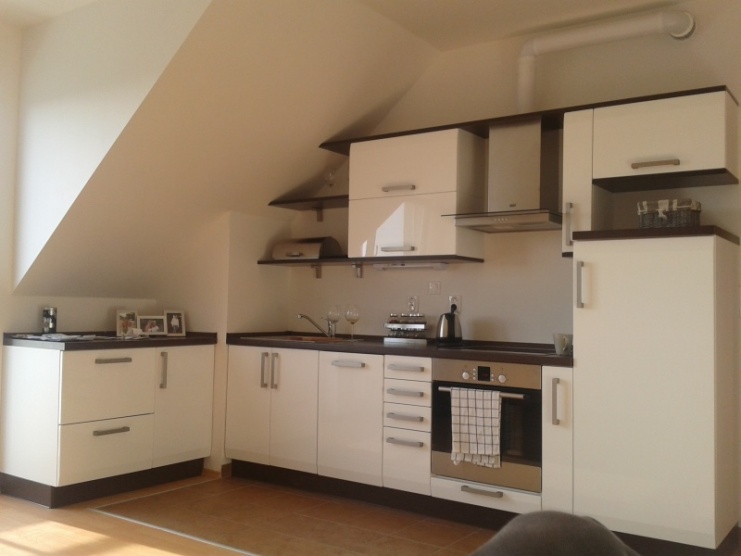 Kuchyň na obrázku je hezká,jen nevidím prostor na přípravu jídel.Ten kousek mezi dřezem a sporákem je miniaturní,takže funkčnost nic extra.