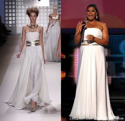 Ještě bych přidala pár fotek. Na té první - no fakt netuším, jestli je to jen tou krásně čokoládovou kůží, ale vypadá v těch skoro stejných šatech mnohem líp než štíhlá modelka. Pro mě má tahle herečka (zpěvačka) velké kouzlo. Umí se nosit a je nejen v obličeji moc krásná. K ní by mi ani jiná postava neseděla.