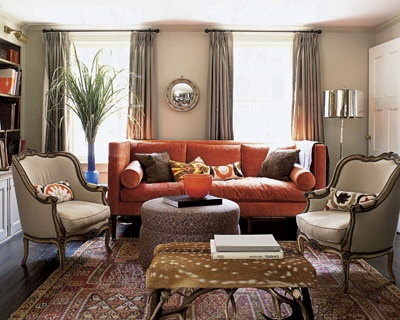 Myslím si že by ty jasně zelené polštáře nehodili k té oranžové. Oranžová a zelená jsou už dost okoukané kombinace.