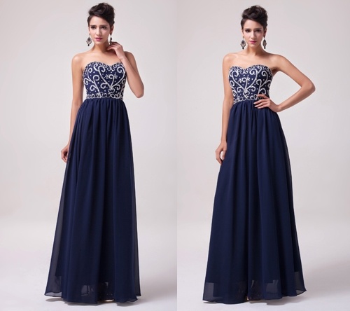 Ahoj, chtěla bych poprosit o rada. Mám tmavě modré šaty (viz obrázek) na maturitní ples a nevím jaké boty k nim. Zdobení je stříbrné. Chci hlavně páskové boty, abych se v nich někde nepřizabila. Neřešila bych to tolik, kdybych je po maturitním plese nezkracovala a nebrala si šaty na svatbu