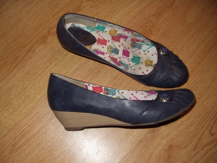 Tak jsem je vyfotila, tyhle už 14 dnů denodenně tahám (tak se neděs, že už vypadají jetě), protože se se mi v nich výborně chodí. Já tenhle styl botek nosím okamžitě jak je nad nulou až do podzimu, mají ten klínek takže zespod mi zima není a když mám dlouhý jeansy, tak vykukuje jen špička, takže zase není vidět jak jsou vykrojený. Navíc jdou ke každé sukni. Ještě je mám v krásné fialové, tak je zítra vybalím (ty ještě šetřím) a taky dám fotku.